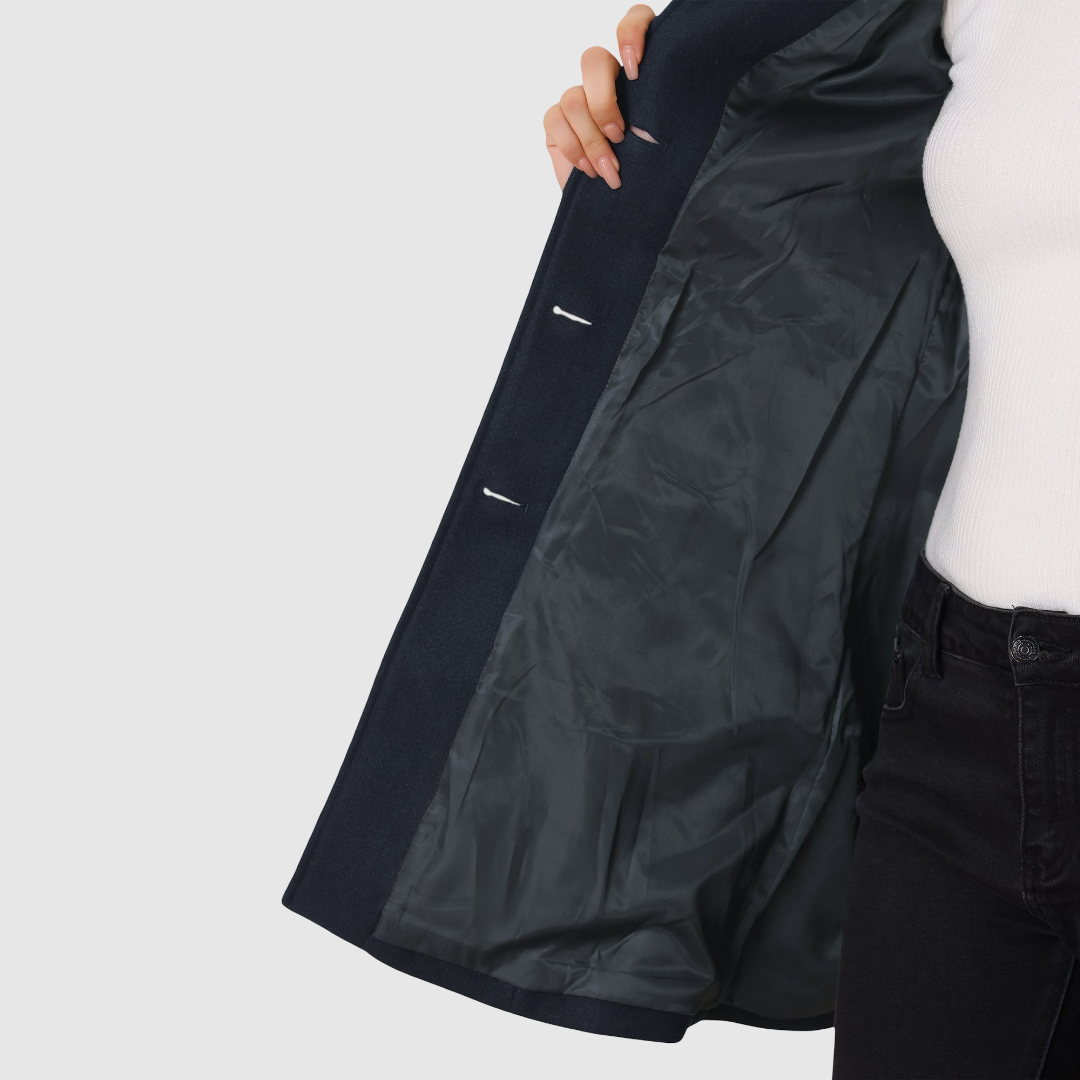 Acest palton elegant premium este creat pentru a adăuga rafinament aspectului tău cu un design simplu și o linie flatantă. Silueta ajustată evidențiază talia, asigurând în același timp confort și ușurință la purtare.