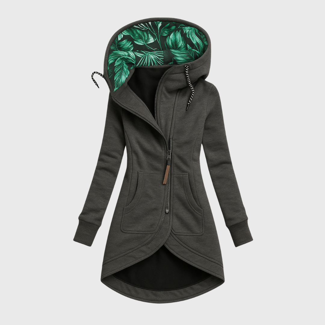 Acest palton pentru femei combină modernitatea și practicitatea într-un design unic și impresionant. Gluga largă cu imprimeu interior oferă un accent de modă irezistibil, iar spatele prelungit asigură o croială elegantă și confortabilă. O alegere ideală pentru oricine caută o haină versatilă, stilată și potrivită pentru orice ocazie.