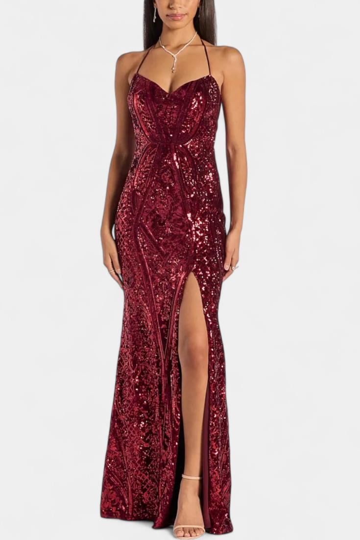 Un siluet fermecător, care emană magnetism și rafinament. Mariana se remarcă prin designul cu spate decupat, care subliniază silueta și un finisaj strălucitor cu paiete, care captează fiecare reflexie a luminii. Croiala sa avantajoasă face ca rochia să fie alegerea perfectă pentru a fi în centrul atenției.