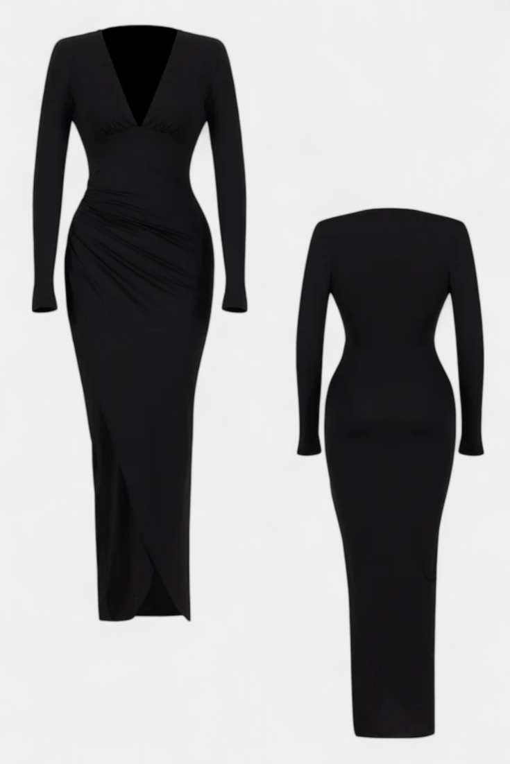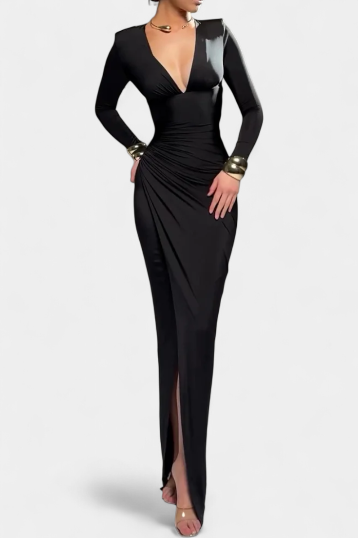 Elena Rochie cu Mâneci Lungi și Decolteu Adânc în V