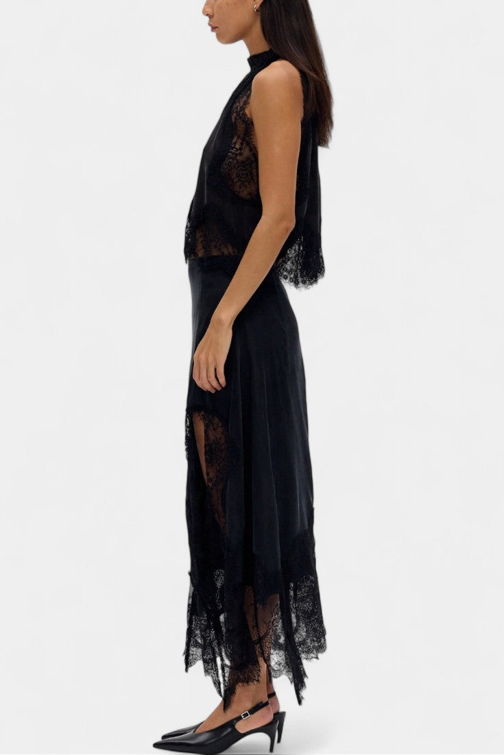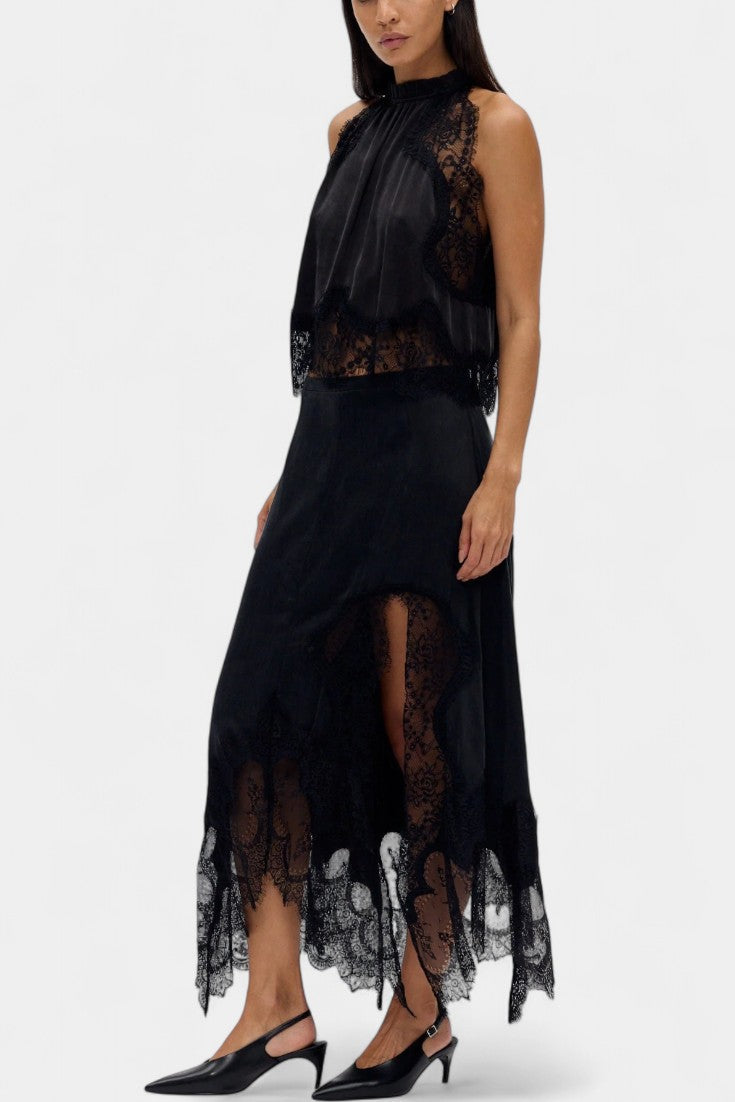 Fustă Midi cu Detalii din Dantelă și Tiv Asimetric
