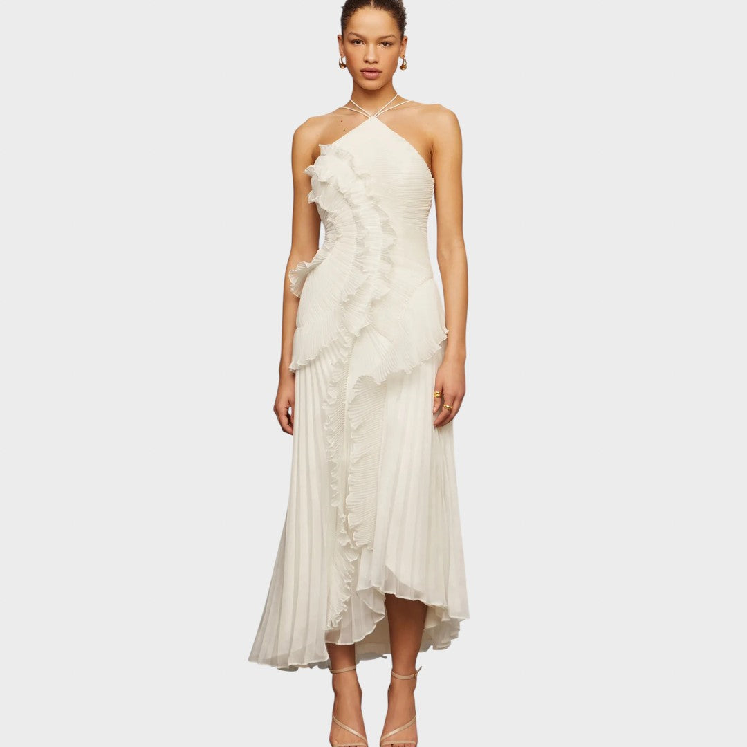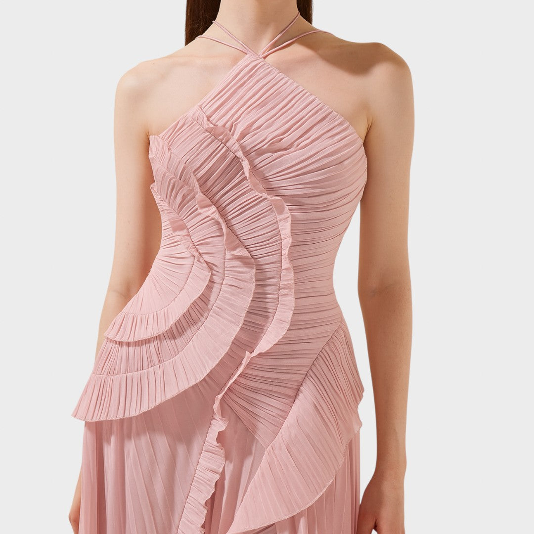 Rochia cu volane oferă un aspect jucăuș și lejer, care captivează din prima clipă. A fost creată pentru momentele în care doriți să arătați delicat, elegant și atrăgător fără efort.