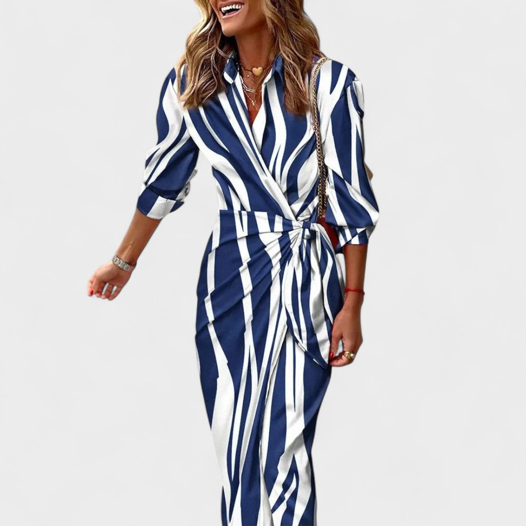 Rochie tip cămașă cu guler elegant și nasturi, țesătură ușoară și maleabilă, care cade frumos, și siluetă fluidă cu o tăietură rafinată – această rochie lungă colorată este creată pentru un efect instantaneu. Subtil subliniază talia și asigură libertate de mișcare, astfel încât funcționează la fel de bine în combinații de zi și ocazii de seară.