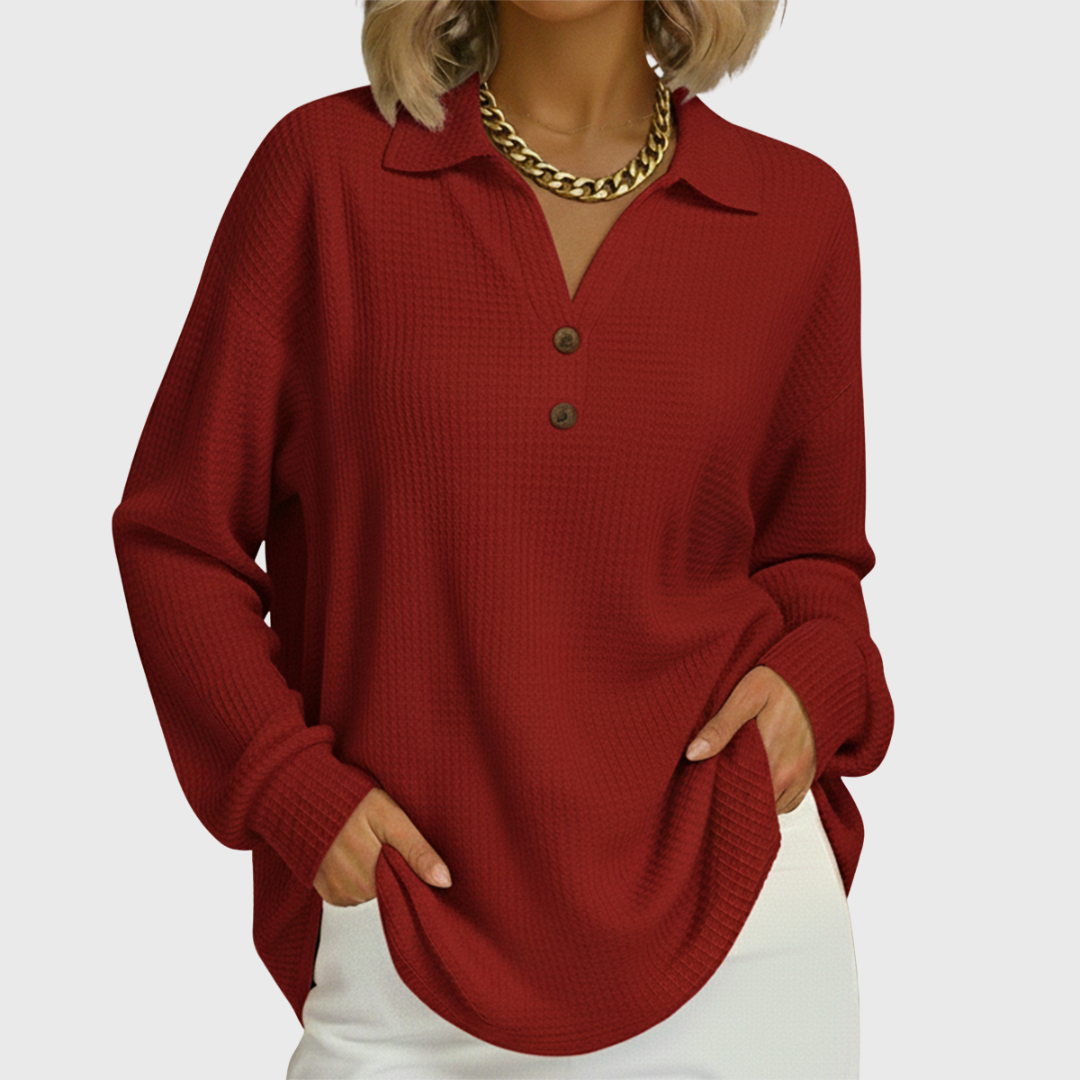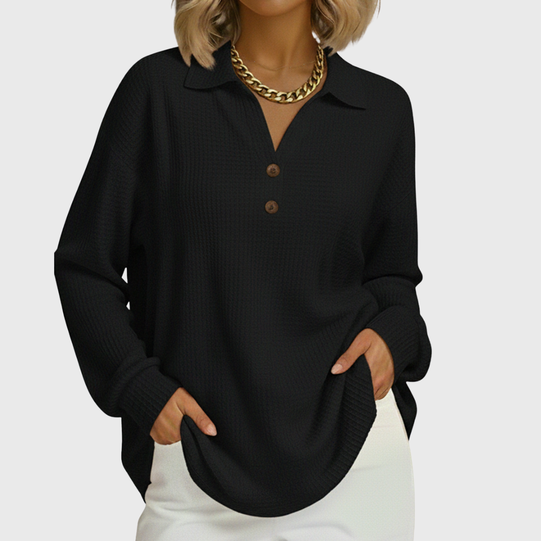 Rămâneți plăcut călduros, chiar și când temperatura scade la 5°C, cu puloverul nostru de lux pentru femei – realizat dintr-un material gros, tricotat dublu, care oferă o senzație extrem de moale și confortabilă. Interiorul este suplimentar călduros și se simte ca un fleece pe piele, astfel încât să vă puteți bucura de un confort suprem în zilele răcoroase.